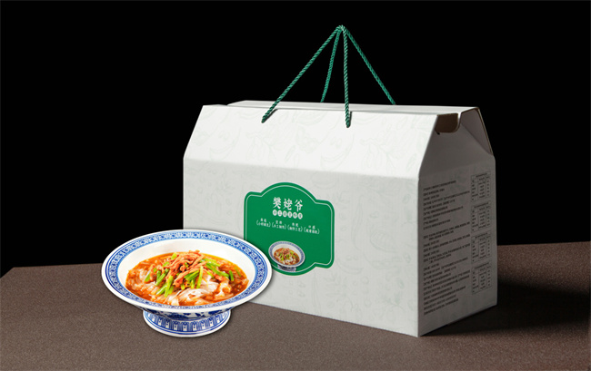 “樊姥爷”手工绿豆粉皮礼盒,不仅备好了绿豆粉皮,还贴心地搭配了肉丝带底专用料包。制作时,只需将粉皮烫软,与料汁拌匀铺底;
